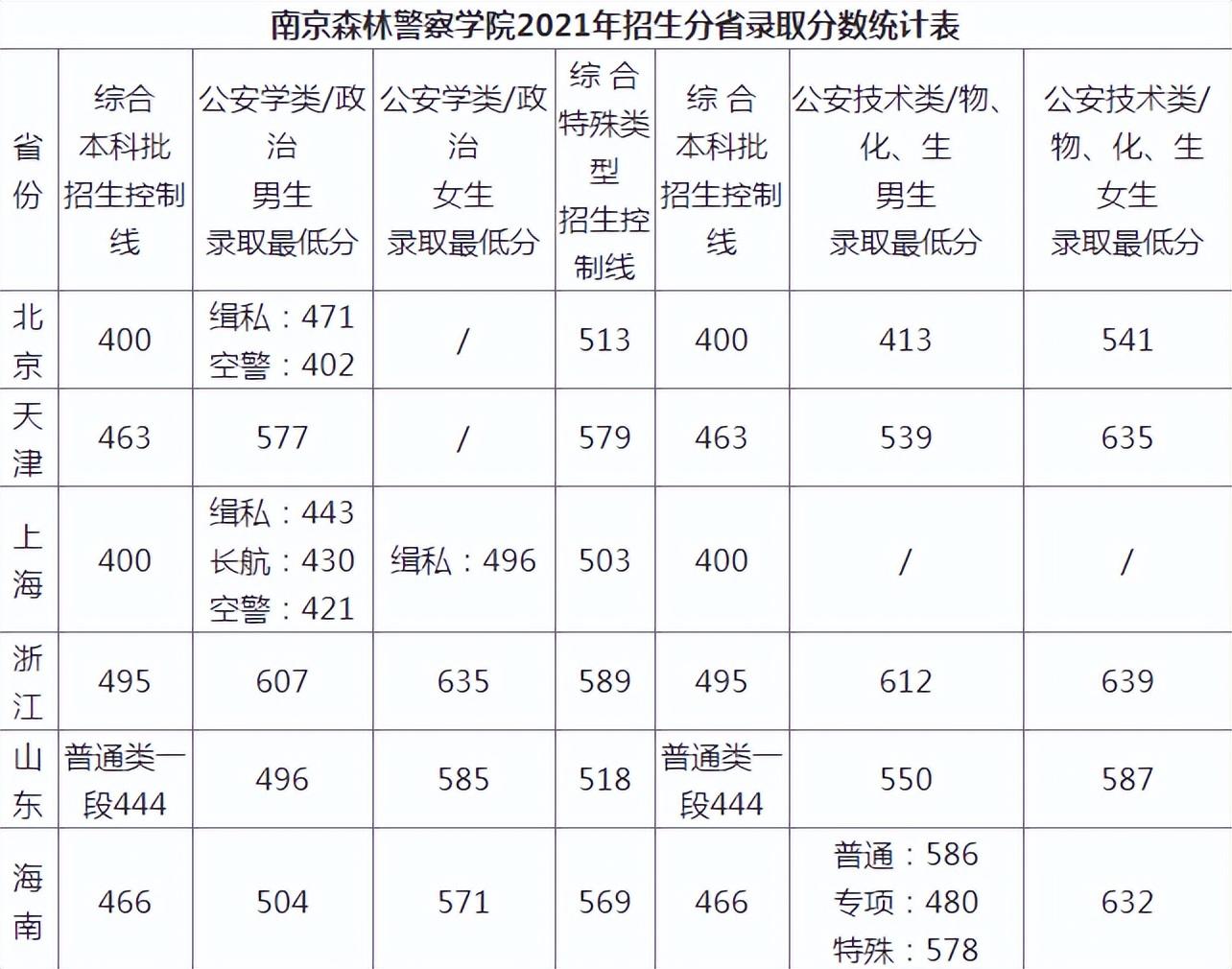 南森的入警率不低,但是报考分数相对而言不算高,相比于中国人民公安大学和中国人民警察大学600+的分数线,南森在多个省份的最低录取分都在520分左右,部分专业的男生录取最低分甚至刚过400分。