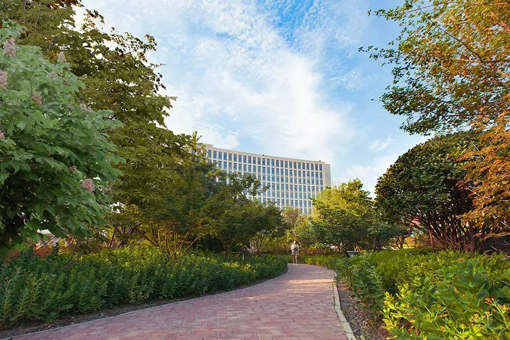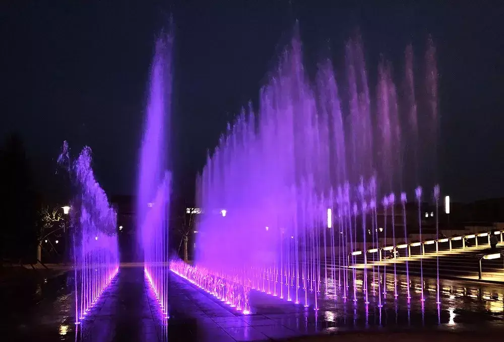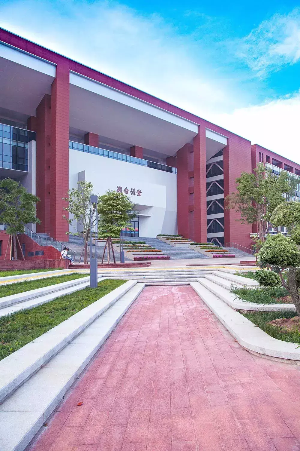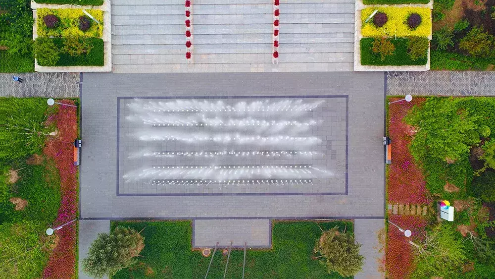 进入校门后,是一片开阔的草坪,端头是一处音乐喷泉,两侧是曲径休憩空间。与核心景观形成疏密有致的氛围。