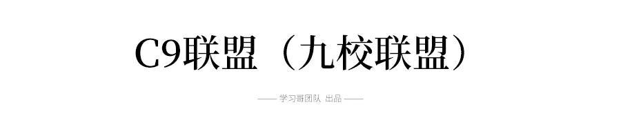 九校联盟(C9),中国首个顶尖大学间的高校联盟,2009年10月启动,联盟成员包括北京大学、清华大学、浙江大学、复旦大学、上海交通大学、南京大学、中国科学技术大学、哈尔滨工业大学、西安交通大学共9所高校,立意创世界一流大学。