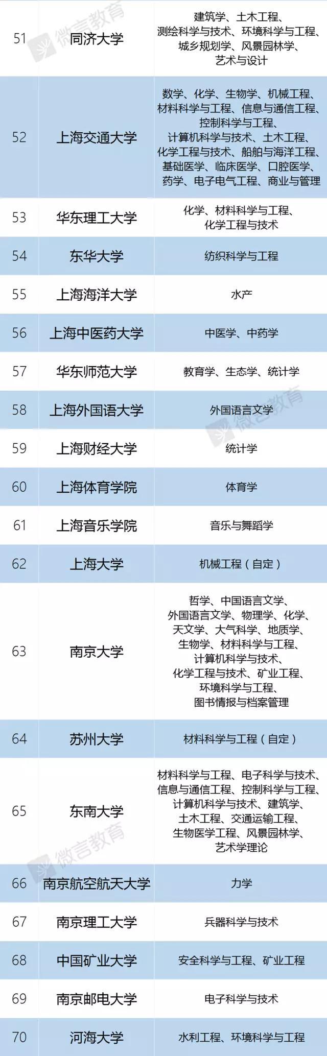 上海地区:同济大学、复旦大学、上海交通大学