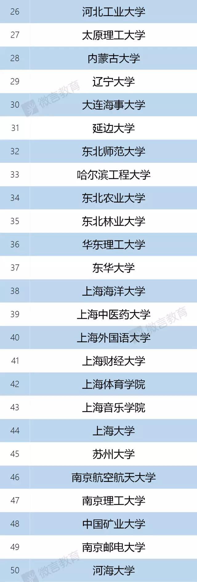 重庆邮电大学、昆明理工大学、燕山大学、哈尔滨理工大学、西安理工大学、长春理工大学、东北电力大学、辽宁工程技术大学、兰州交通大学、辽宁工业大学、河北工业大学、兰州理工大学、沈阳建筑大学、安徽理工大学、安徽工业大学、河南理工大学、河南工业大学、华北水利水电大学、武汉科技大学、武汉工业大学、湖北工业大学、武汉纺织大学、成都理工大学、西南石油大学、长沙理工大学、陕西科技大学、西安科技大学、西安建筑科技大学、四川理工学院、成都信息工程大学、贵州理工学院