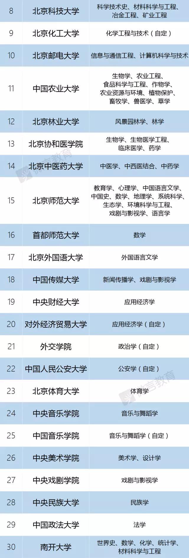北京地区:清华大学、北京大学、中国人民大学、北京师范大学、北京航空航天大学、北京理工大学、中国农业大学