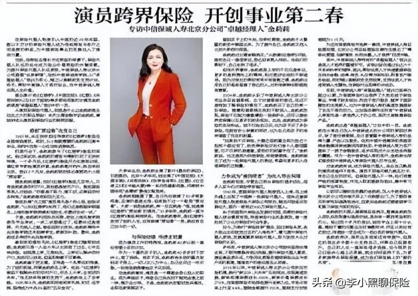 最近《北京青年报》就报道了著名演员金莉莉跨界卖保险,开创事业第二春的事。