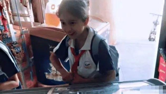 从照片中看,这名新疆小姑娘年龄不大,和很多孩子一样,她放学后背着书包来到了附近的一家小卖部买零食吃。