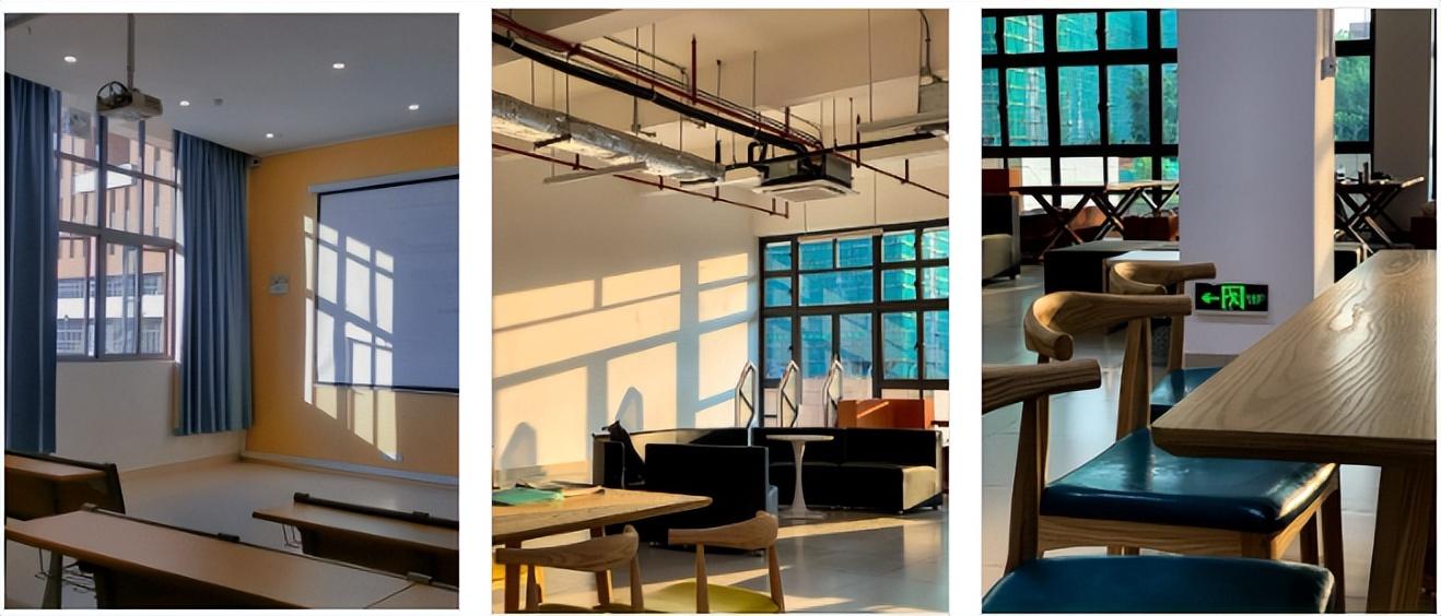 教学楼新建了实训室,手绘室,里面工具都是新的,马克笔、打印机、套尺等等都有。