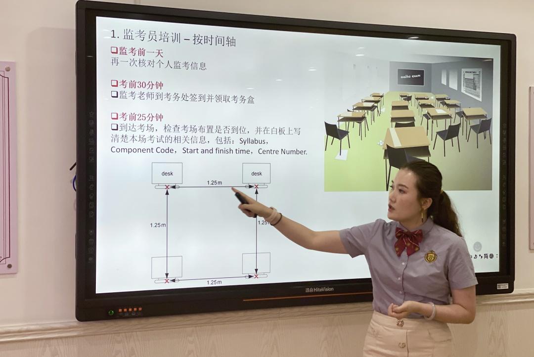 接着,国际交流中心夏添老师介绍了学校剑桥官方国际考务工作组的情况,同时还介绍了我们教师队伍丰富的教育教学管理经验,确保为剑桥官方国际考生提供温馨优质的服务,为每一场官方国际考试的顺利进行提供良好的保障支持。