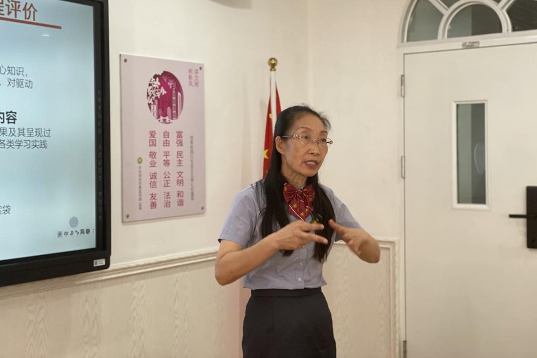 教学教研中心蔡敏主任介绍了学校的课程设置、师资团队等情况。重点介绍了课程教学管理与课程评价等实施措施。