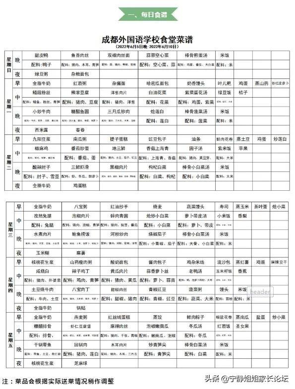 学校公众号会提前公布下周食谱,并且附上营养分析图,针对不同年龄段的需求制定菜谱,科学健康。