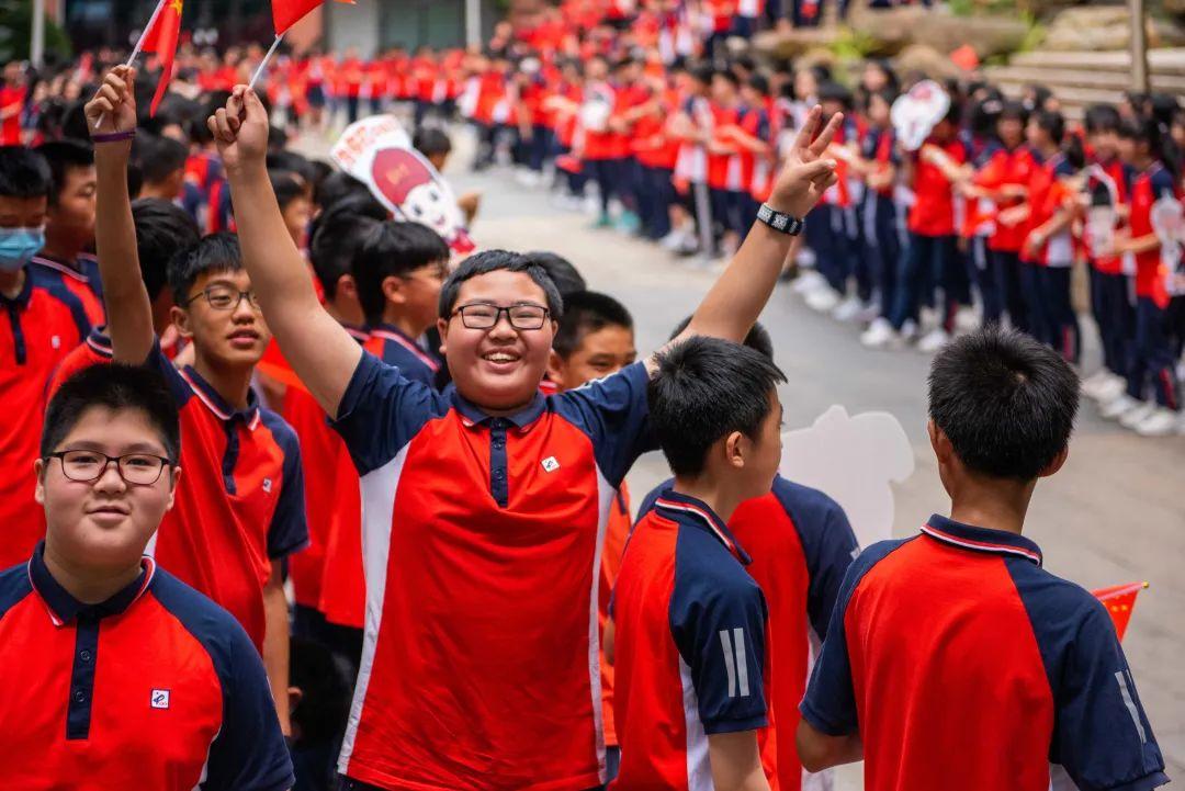 凤鸣山中学的校服体现了“整齐、好看、舒适”这三大特点,同时又展现出一股“团结”的氛围感。