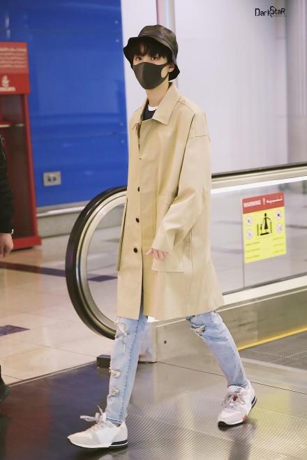 3月13日,王俊凯头戴黑帽黑口罩低调现身北京机场,照片中的他身穿风衣酷劲十足,大步流星潇洒走向登机口。