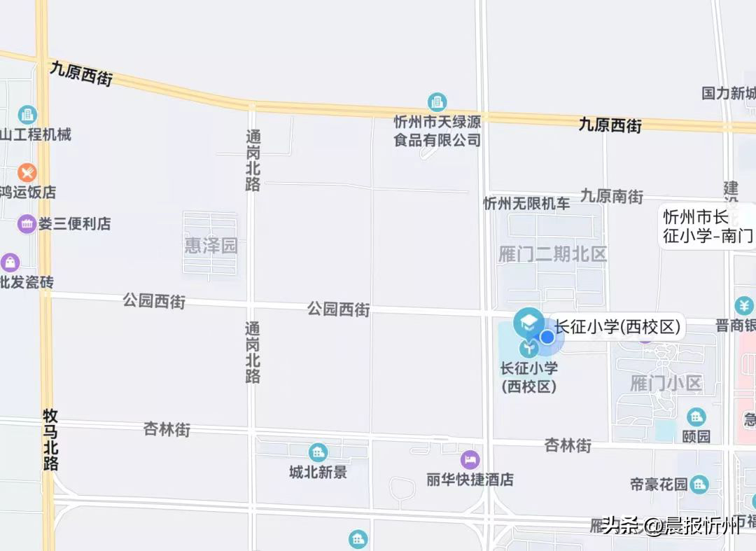 附件1:忻州市长征小学服务范围:东起七一北路,西至建设北路;南起雁门大道,北至梨花街。
