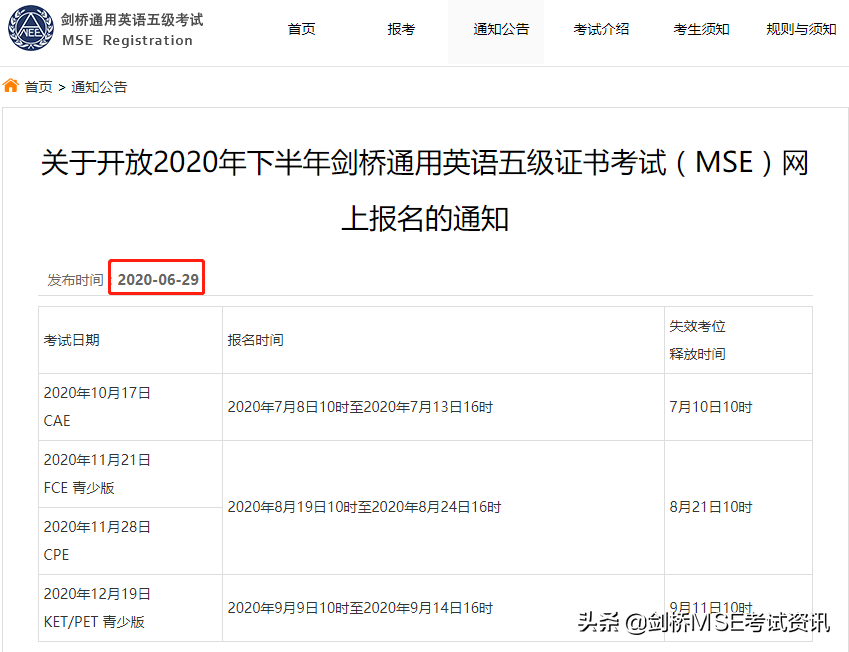 注:教育部考试中心剑桥通用英语五级考试报名官网通知链接: