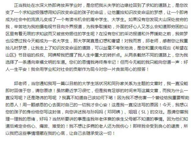 信中他说:“在这期间姐姐的助理在我这取走了阿姨和姐姐写人我的所有信件和照片,说姐姐她们做节目需要,而事实上根本不是这样,她们只是怕我手里有什么所谓的把柄吧!(我是这样认为),因为根本没有做节目。”