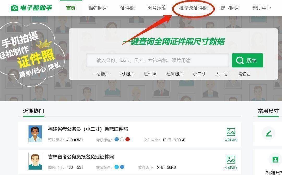 打开电脑浏览器,找到【报名电子照助手】网站,在上面找到“批量改证件照”功能