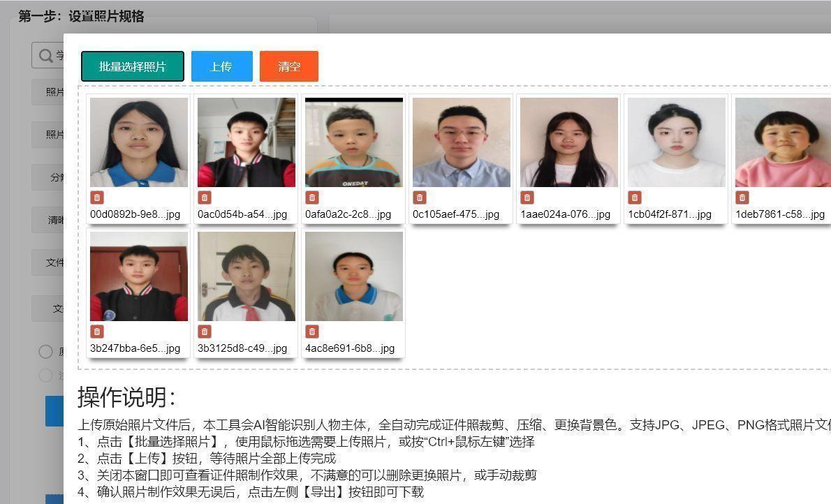 然后就可以下载了,下载文件是一个压缩包,里面就是制作好的学籍照片电子版。注意,批量处理不会修改照片文件名,下载后的照片可以直接用于上传学籍系统。