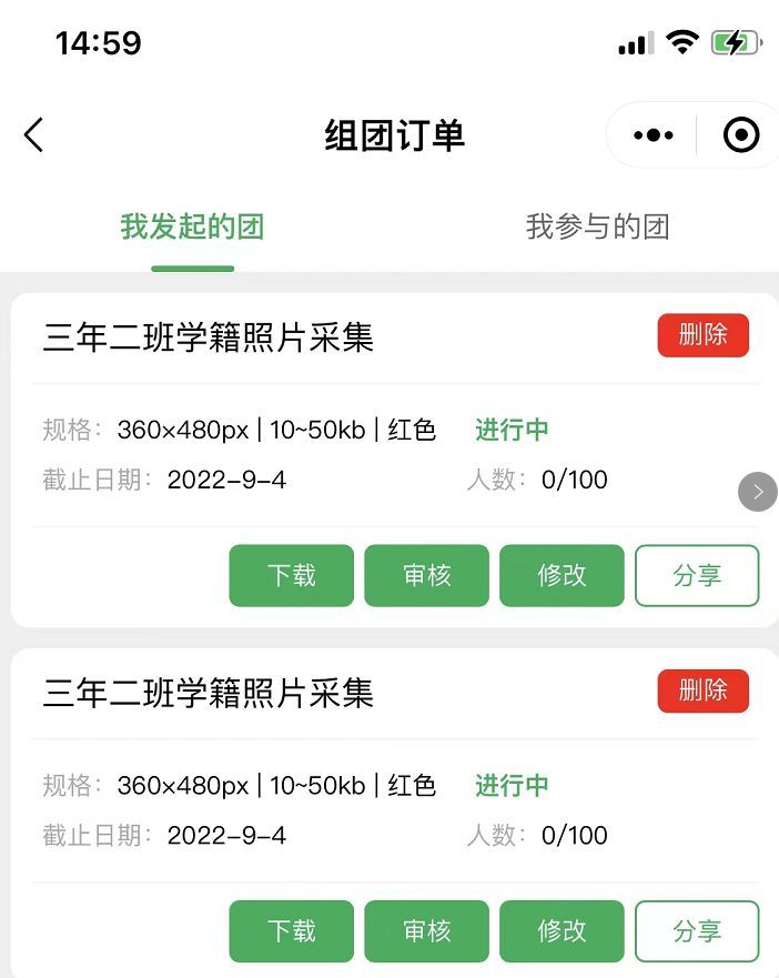 7、采集过程中,可以查看提交的人数、进度和照片,待照片都提交上来并且确认无误后,可以在小程序中获取照片下载地址,在电脑上下载就可以了。