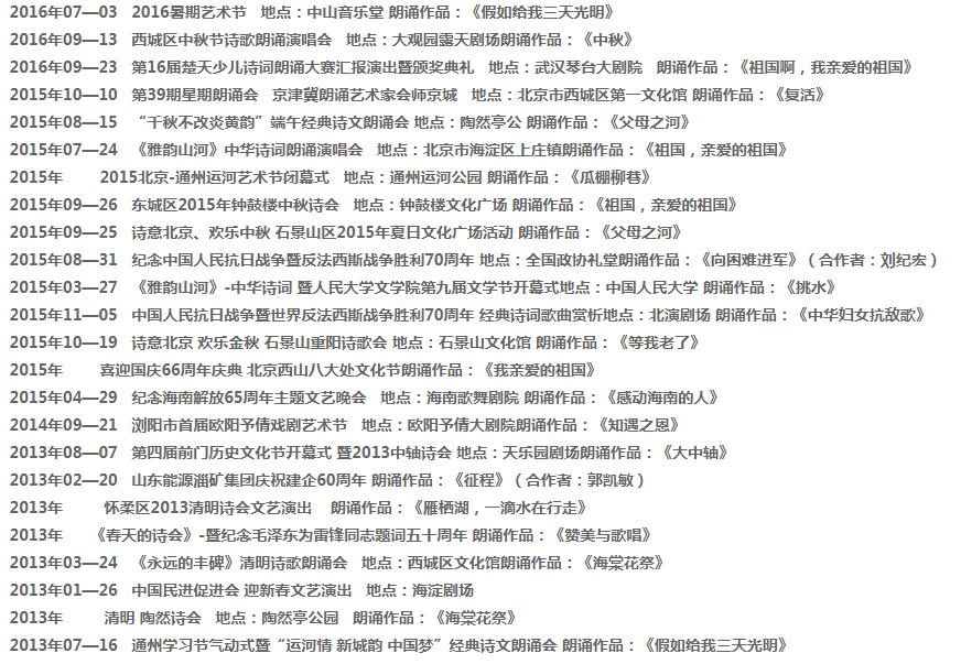从1996年开始,杜宁林参与了国内外各种类型的朗诵表演有上百场,她对气息的控制和调和、对朗诵饱满的感情感动了无数人。