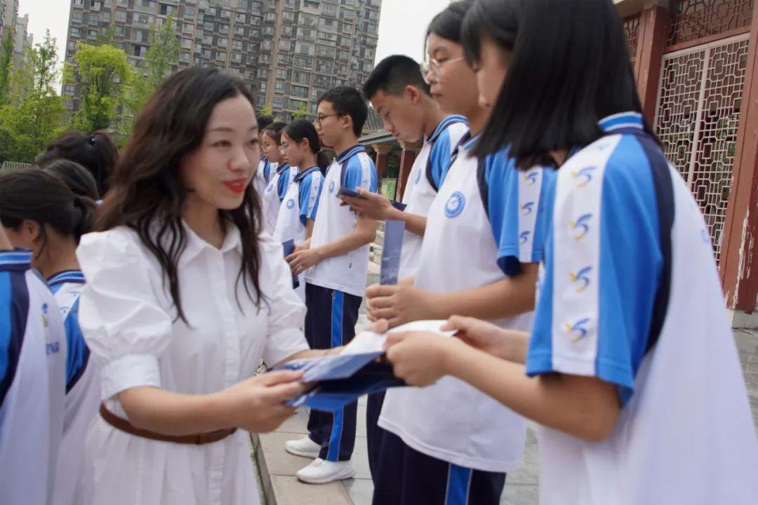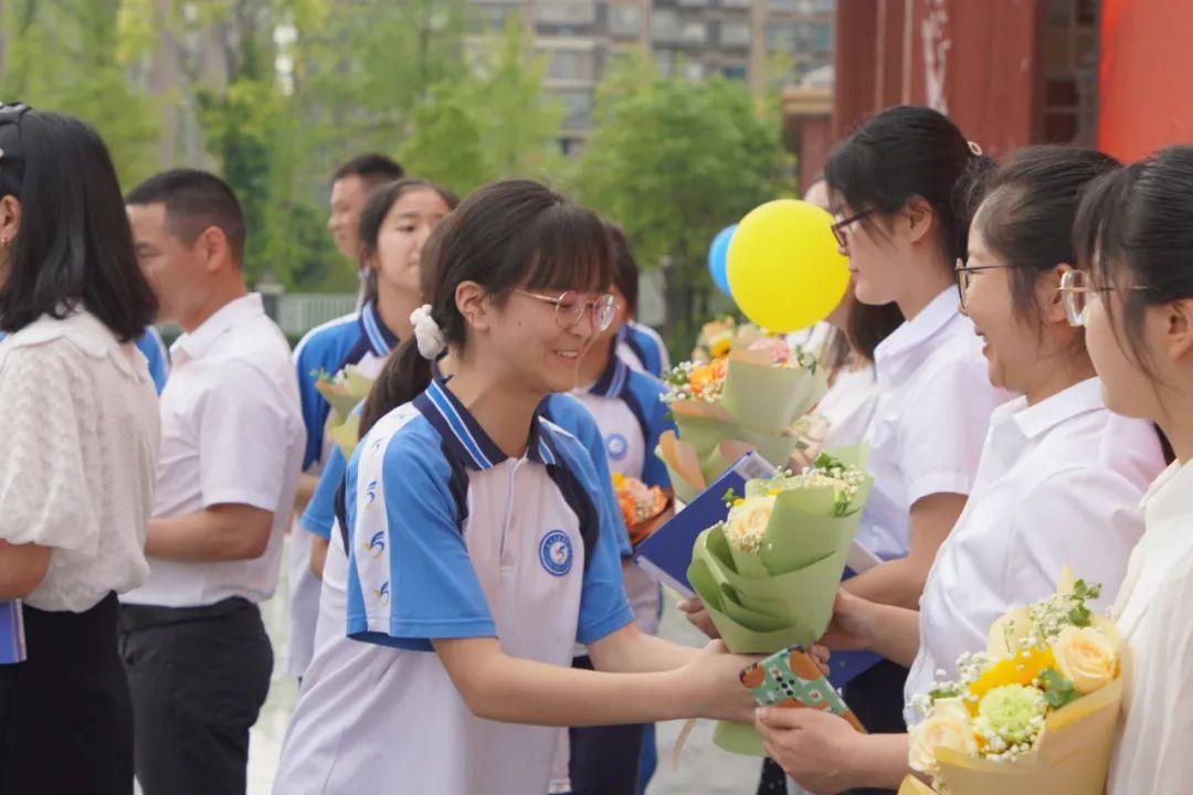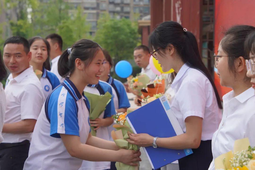 烈日下的军训、冬日里的运动会、无数个鏖战题海的晚自习……三载光阴,有我们诉不完的故事、谈不完的回忆。六月的骄阳把满园的苍翠凝成你们的笑脸,三年的努力把稚嫩的青春铸成你们拼搏的足迹。六月的风即将吹散师生们,却吹不散师生情。《华夏》《启程》成为师生互动的另一种语言,表达着彼此的祝愿。