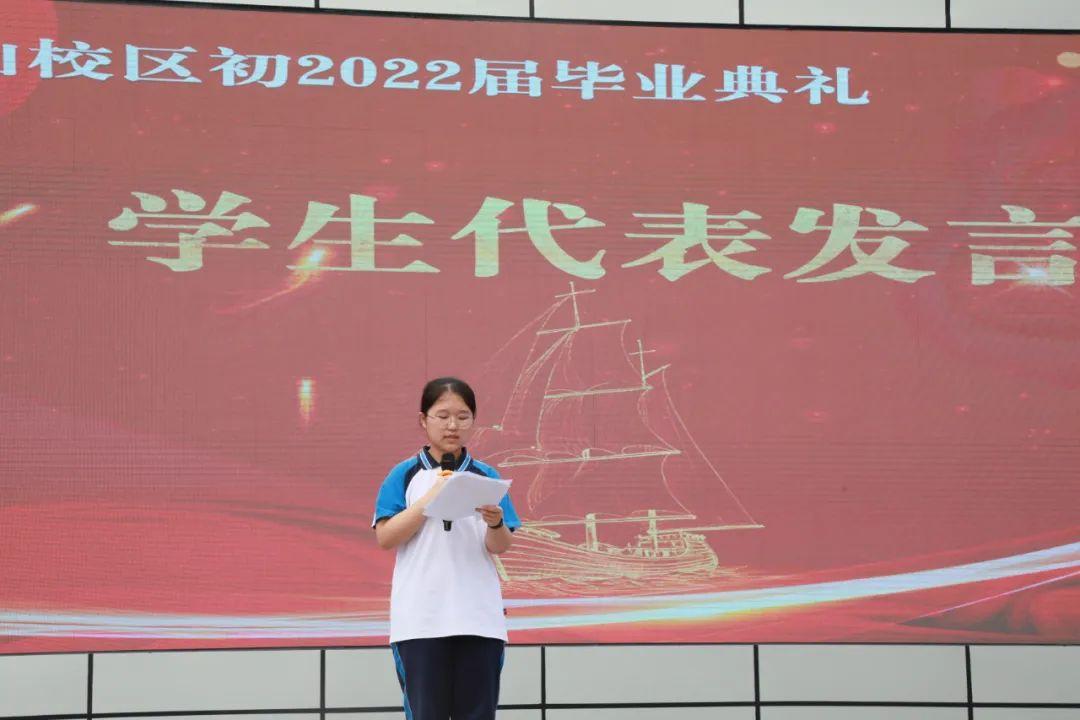 学生代表何语欣发言,感恩母校的培养、老师的教诲,感谢父母的养育、同学的陪伴,感召自己满怀信心、拼搏进取,为祖国做贡献,为母校添光彩。