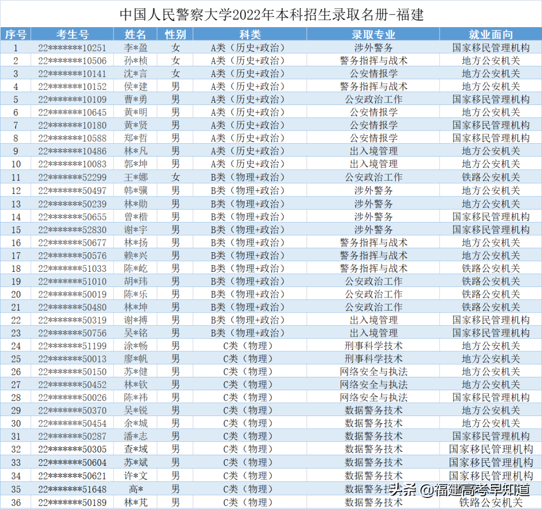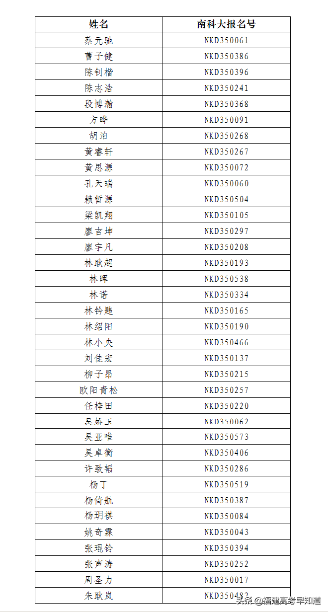 学校虽然没有公布录取分,但是公布了福建省新生名单