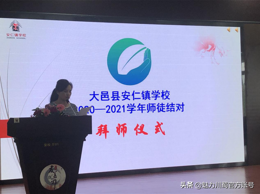 “问渠那得清如许,为有源头活水来。”为深入推进我校教育教学工作,充分发挥优秀骨干教师的引领作用,帮助年轻教师尽快适应教育教学工作,大邑县安仁镇学校2020-2021学年师徒结对拜师仪式,于9月11日中午,在学校多功能教室隆重举行。