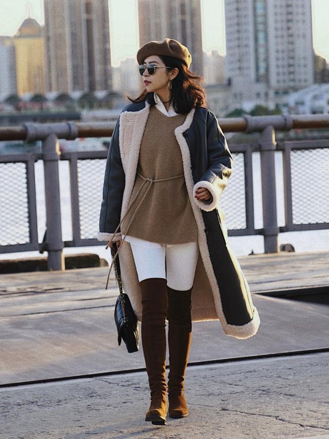 这一组搭配最为适合三四十岁左右姐妹的成熟姐妹,在“短裙+过膝长靴”中稍微露出一截自己的大腿线条,轻熟性感显气质。再加上长大衣,分分钟get高级感!