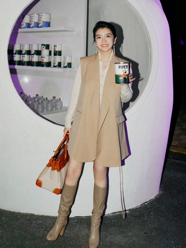 而在这种搭配中,我们要选择过膝长靴来作为搭配,不得选择中筒靴。因为中筒靴版型偏宽松,会撑起半身裙的裙摆,从而显得下半身十分臃肿,是个大雷区!