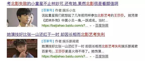 而王莎莎则属于还在苦苦求出路的挣扎童星。