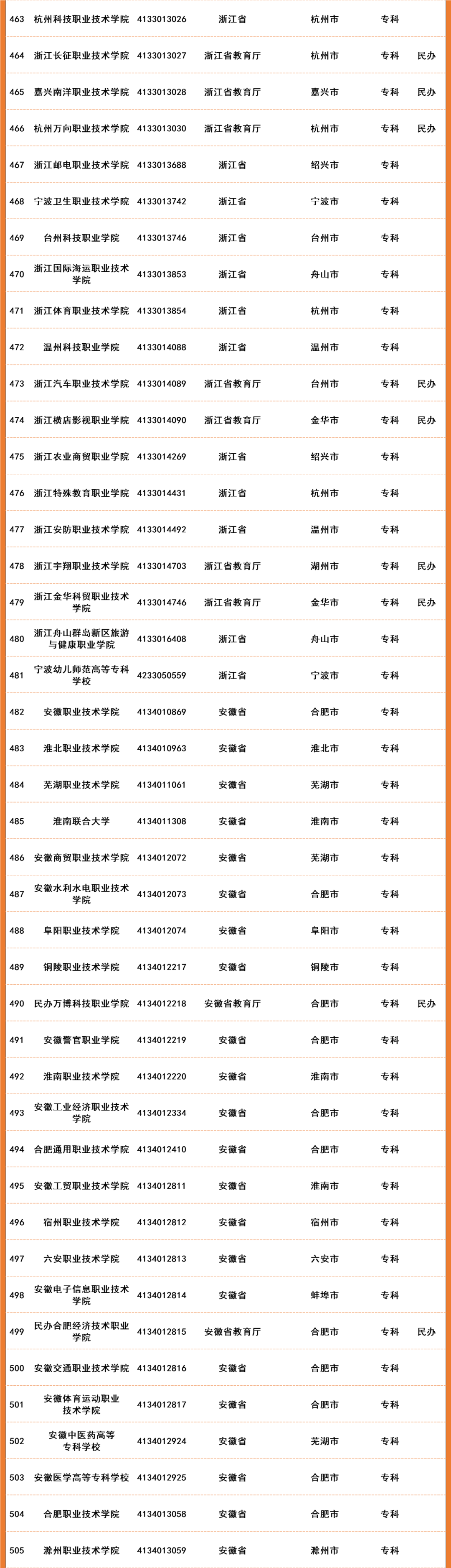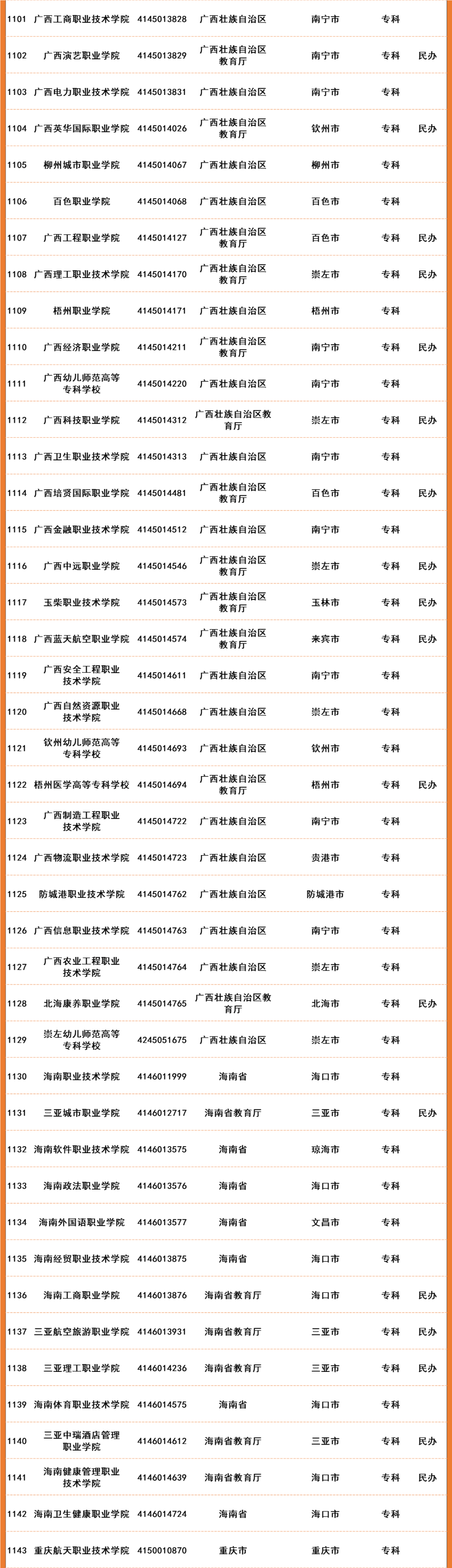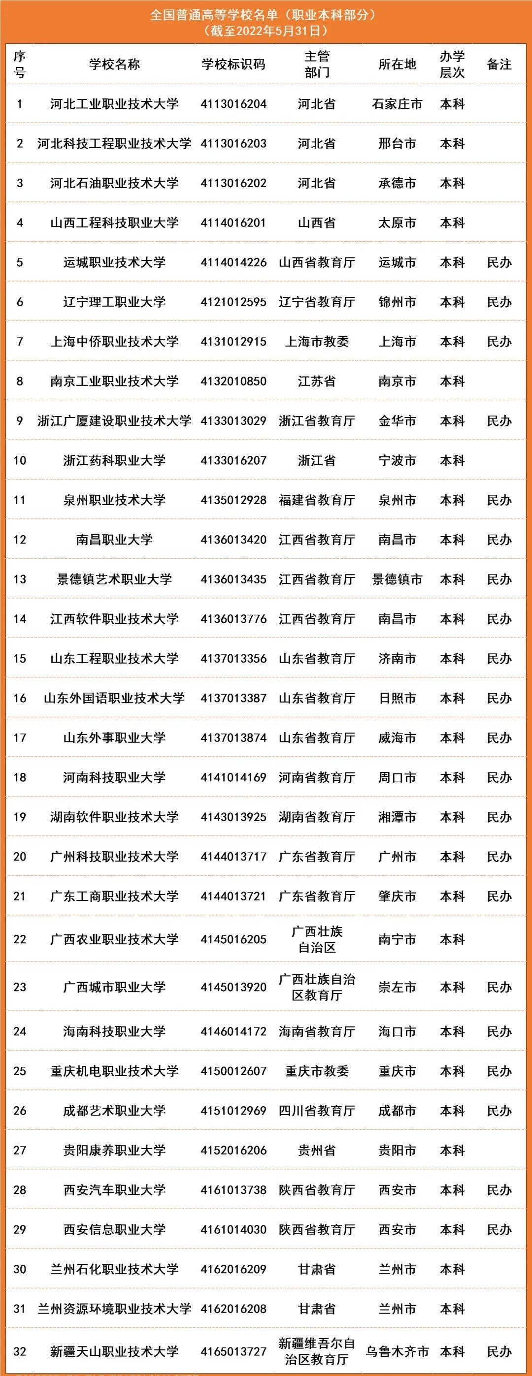 与此同时,2022年比2021年名单多了6所新高职,分别是: