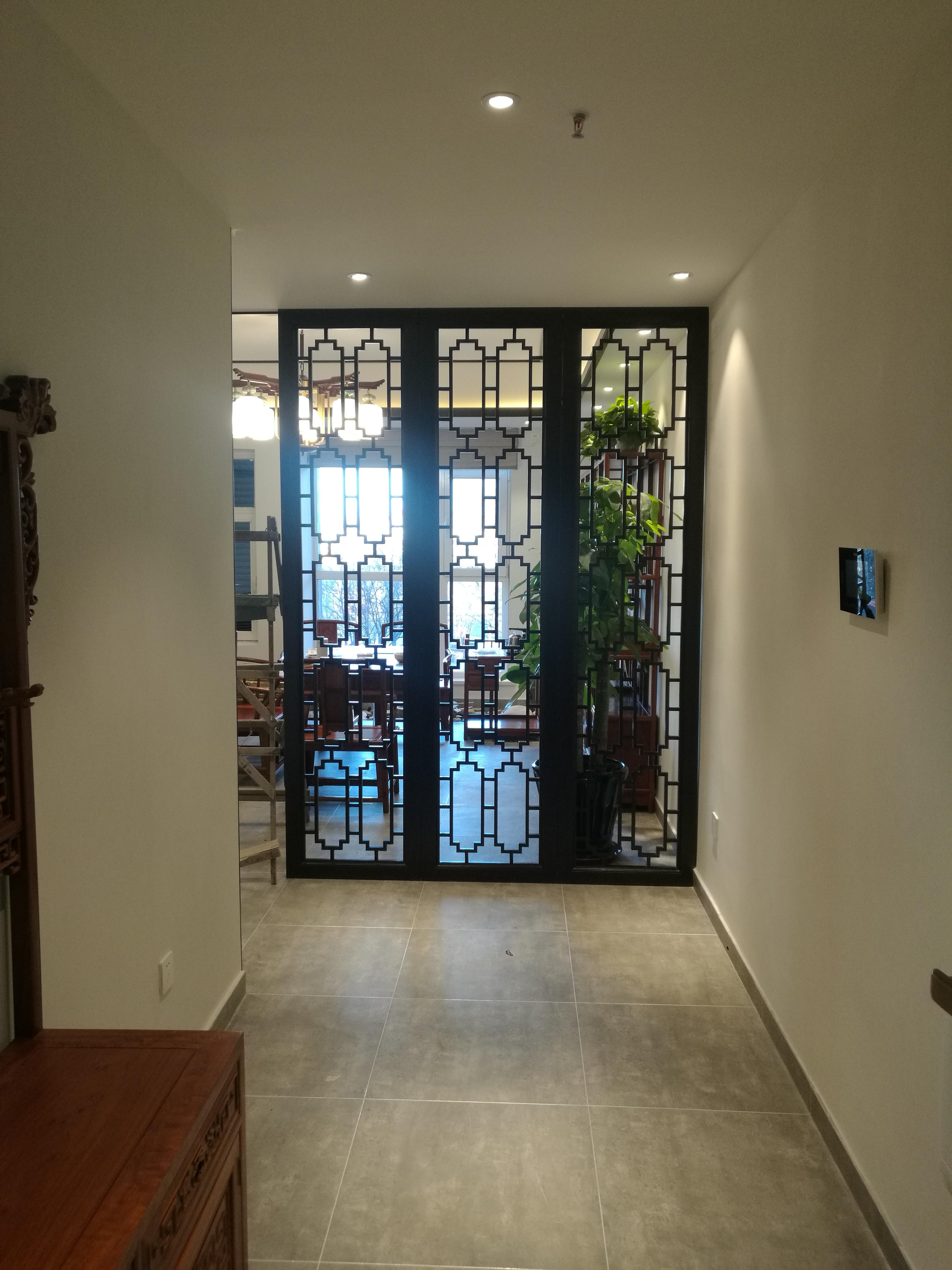 实木卯榫的屏风,既满足了小户型客厅和小书房的分割,同时也增加了屋子的空间感觉,还起到一些隐私保护作用。同时,隔断还可以作为屋内装饰效果来看待,反增添了一些神秘感!