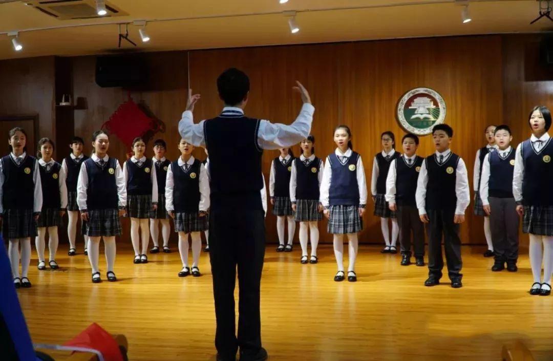 参观家长和学生陶醉在合唱团的视听盛宴中。