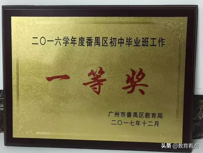 学校在番禺区初中毕业班综合评比中长期居民办学校组一等奖第一名