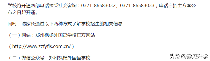 凡有意报名我校的应届小学毕业生,需在报名时,填报郑州东枫外国语学校为电脑派位志愿或面谈志愿。我校的报名代码为:0127。