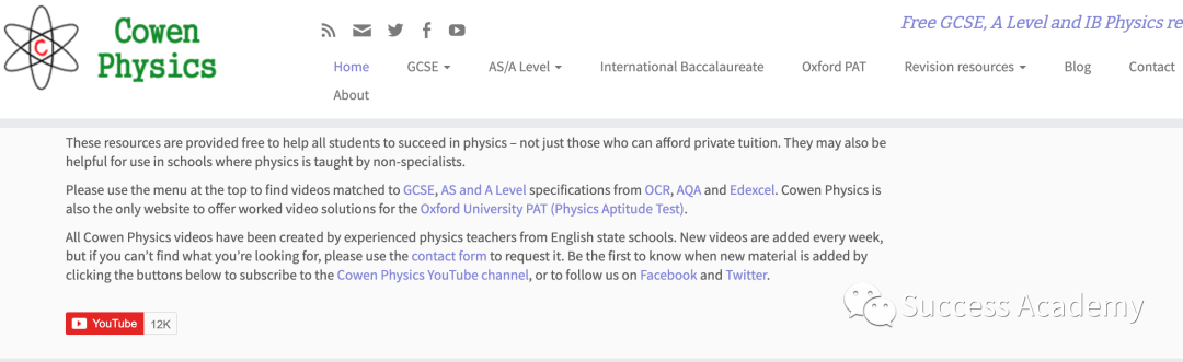 免费的物理复习网站,以视频为主,主要针对GCSE和A-level学生。