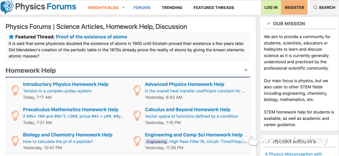 喜欢逛论坛的同学,这个物理学习网站不能错过,里面含有科学文章、作业帮助和对物理问题的讨论。