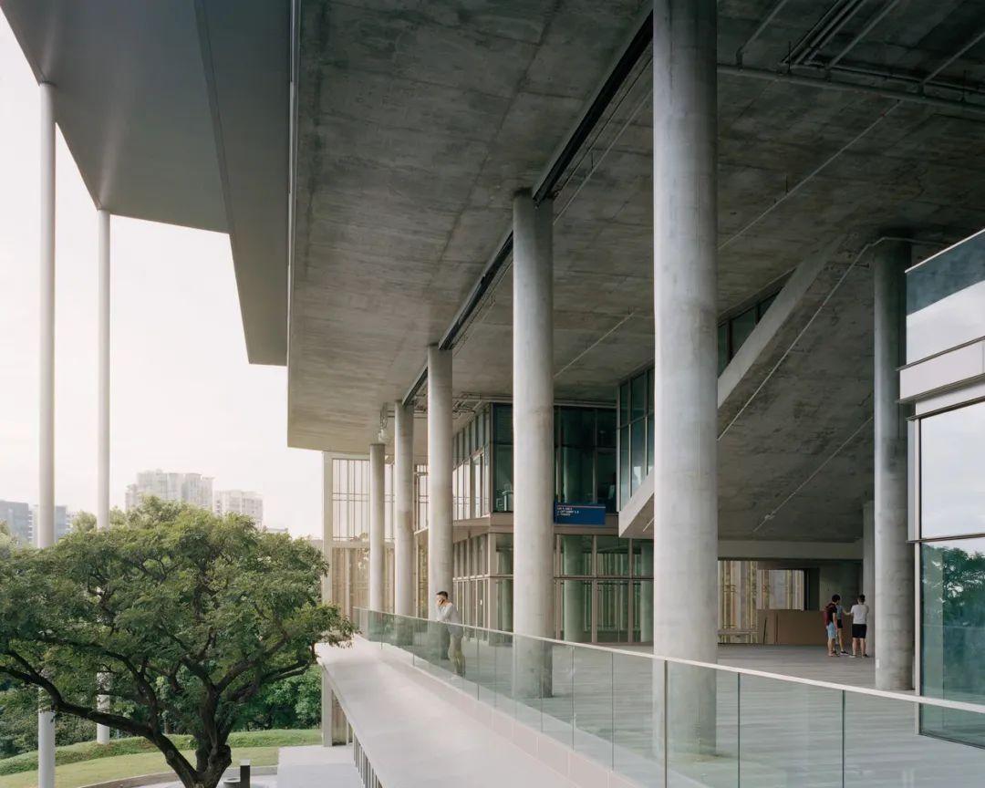 南立面的柱子直达屋顶,支撑着向外悬挑52英尺(约16米)的大屋顶。这为建筑遮挡了热带阳光,并在屋顶上为光伏板预留了额外的面积。