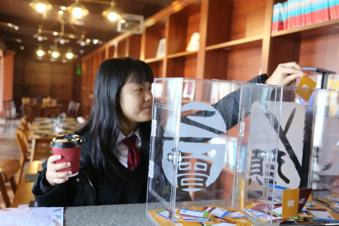 走进校门,左侧是学校咖啡厅,学生可以用所获得House积分卡在这里换取咖啡;每天中午,学生还可以在这里进行电子阅览。