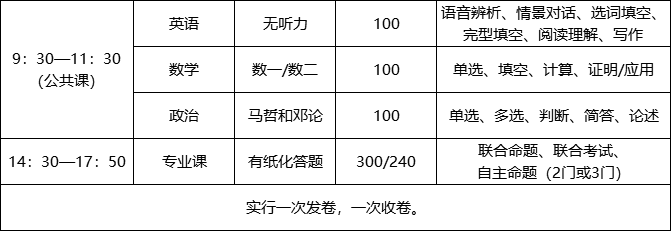公共课(满分200分/100分)+专业课(满分300分)