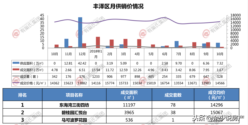 丰泽区本月住宅新增供应7.32万㎡,成交128套,环比下跌80%;成交面积1.67万㎡,环比下跌79%;成交价格14566元/㎡,环比上涨5%;