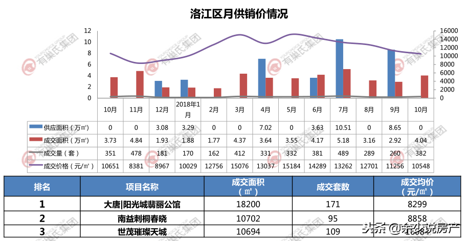 洛江区本月住宅无新增供应,成交382套,环比上涨47%;成交面积4.04万㎡,环比上涨38%;成交价格10548元/㎡,环比下跌6%;