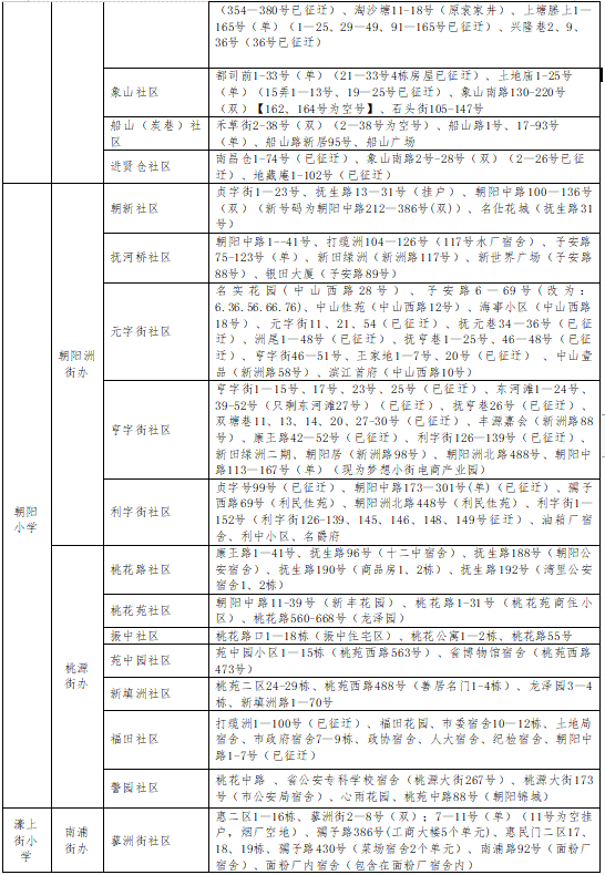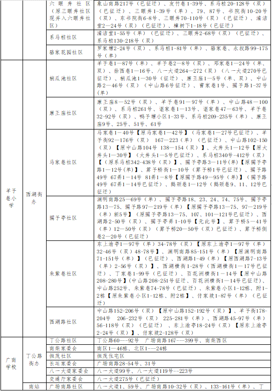 豫章路、省委宿舍、三经路以西阳明路以北的现役军人子女;阳明路:单号195#—255#(一经路至豫章路段);一经路。