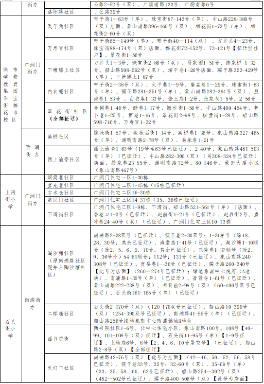 东湖区小学招生地段范围公布