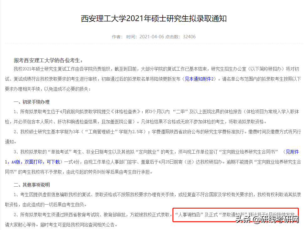 “所有拟录取考生须通过陕西省教育考试院、教育部审批,方能被我校正式录取。“人事调档函”及正式“录取通知书”预计将于6月份陆续发放,请大家耐心等待。届时考生可登陆我校网站查阅相关公告。”