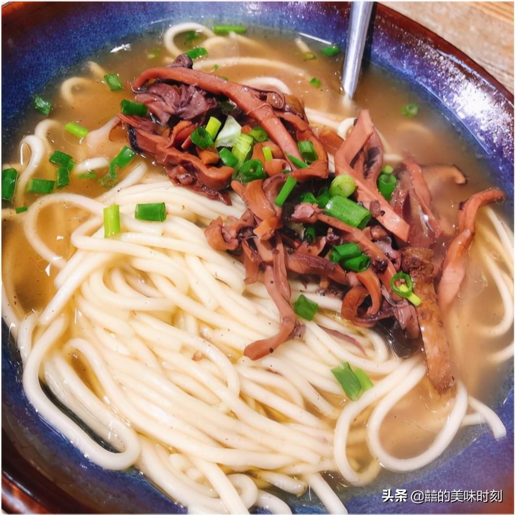 海味面的起源我们已经追溯不到,记忆中上个世纪四十年代就已经开始流行,我们的爷爷辈父母辈都是吃着这一碗海味面长大。作为内陆城市,在物质匮乏的年代,自然是吃不到新鲜的海鲜,还好鱿鱼好保存,干鱿鱼在高汤里慢煨,条件好一点放海参金钩香菇冬笋一起炖煮的汤底别提多鲜美了,与其说是吃面,还不如说是喝汤。