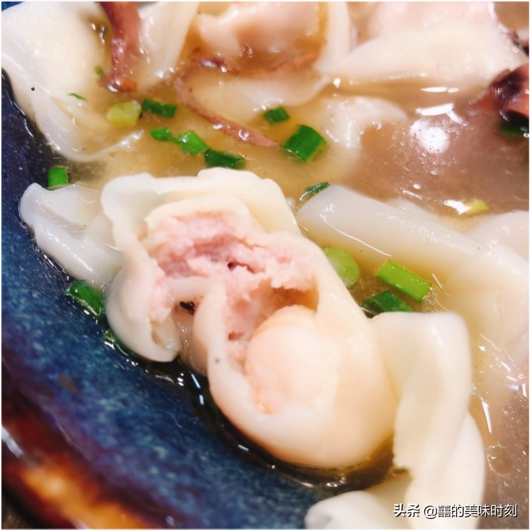 除了鱿鱼面,他们家的鱿鱼抄手也堪称一绝,皮薄馅多,里面一半是整只虾一半是肉馅儿,虾仁Q弹爽口非常新鲜,汤底有单独放鱿鱼,还是用的鱿鱼面的高汤。不仅仅鱿鱼抄手这样,就连蔬菜汤也是用鱿鱼汤底打底,汤底和包包白很好地融合在一起,吃起来咸香可口。