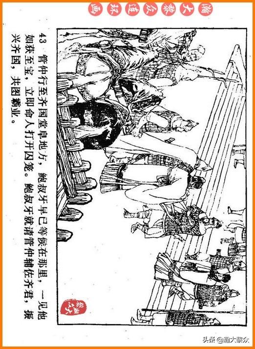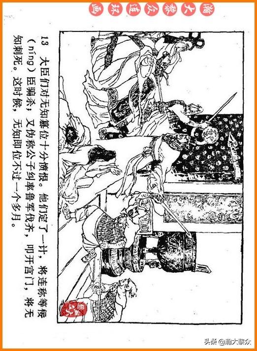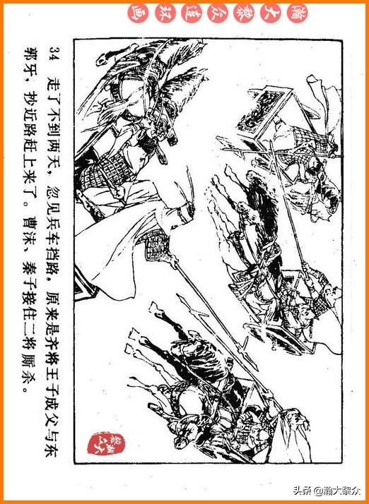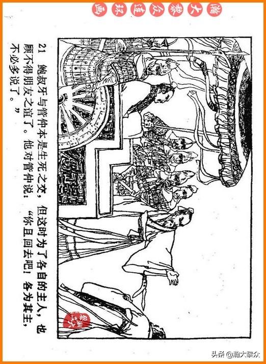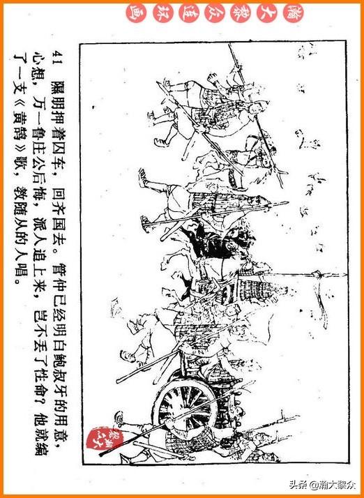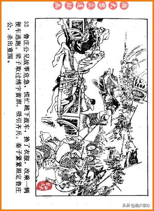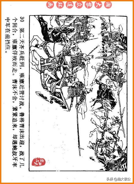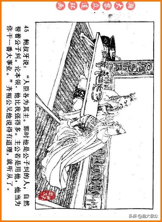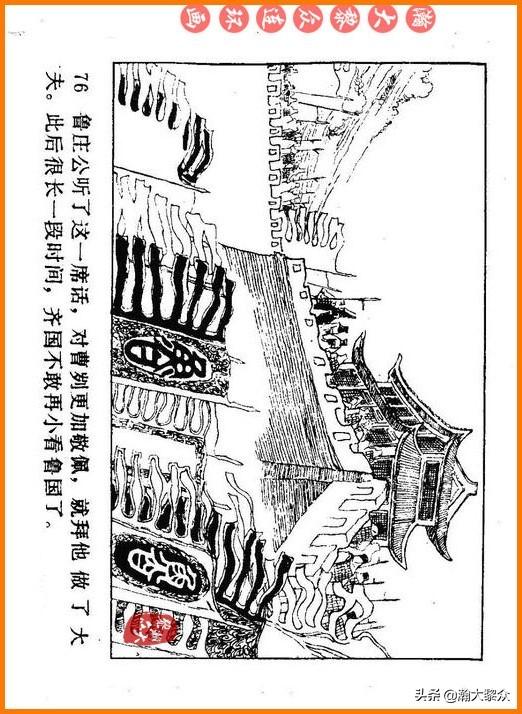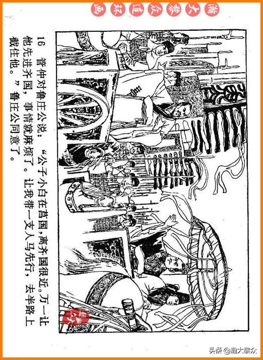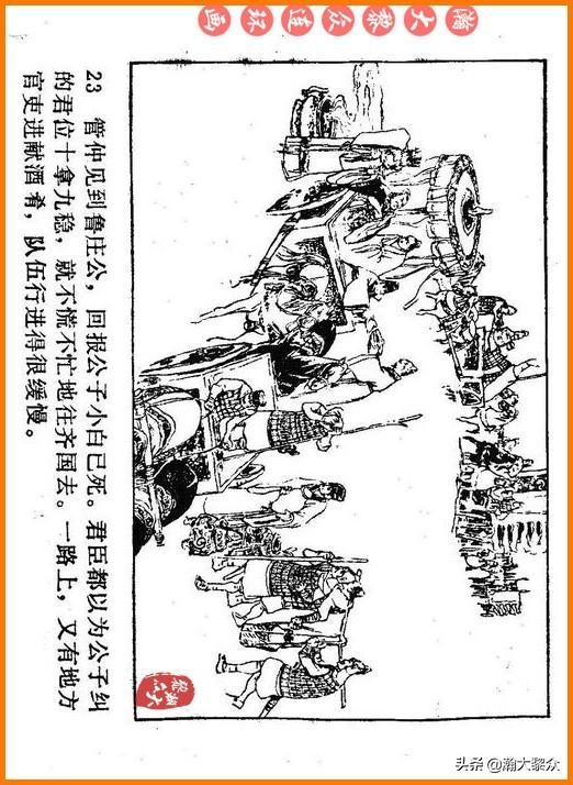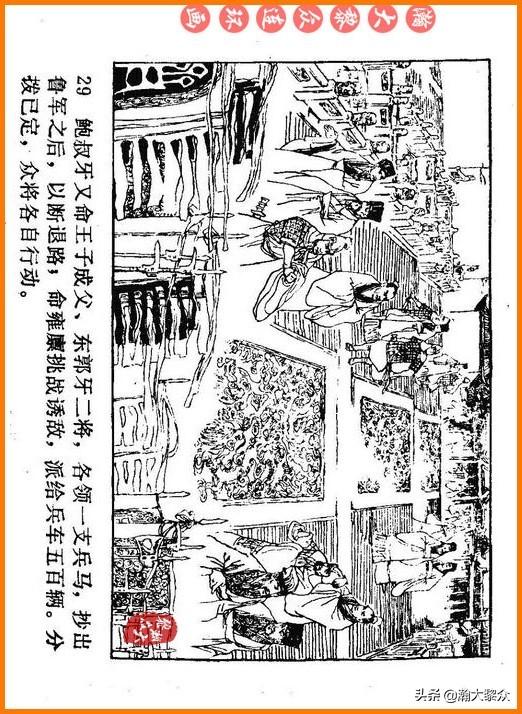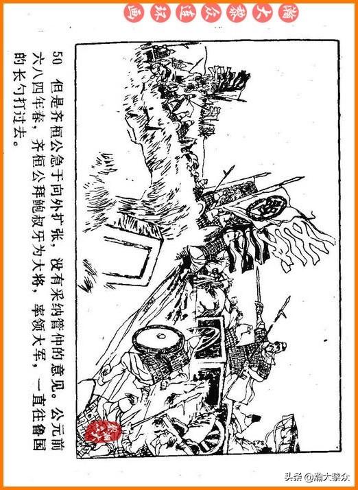 【内容提要】公元前684年春,齐桓公任用管仲为相国,鲍叔牙为大将,率领大军向弱小的邻国鲁国大举进犯。鲁庄公任用曹刿为大将,布阵于长勺。飽叔牙因连打胜仗,不可一世,决定先发制人,向鲁军发动进攻。曹刿传令军中不许喧哗,严守阵地。因鲁军阵容严整,齐军无法破阵。接着,齐军又擂响战鼓,发起了第二次进攻,鲁军仍然按兵不动。当齐军发动第三次进攻时,曹岁命人播响了战鼓,鲁军一个个如猛虎下山,直冲齐军,齐军终于被打得大败。