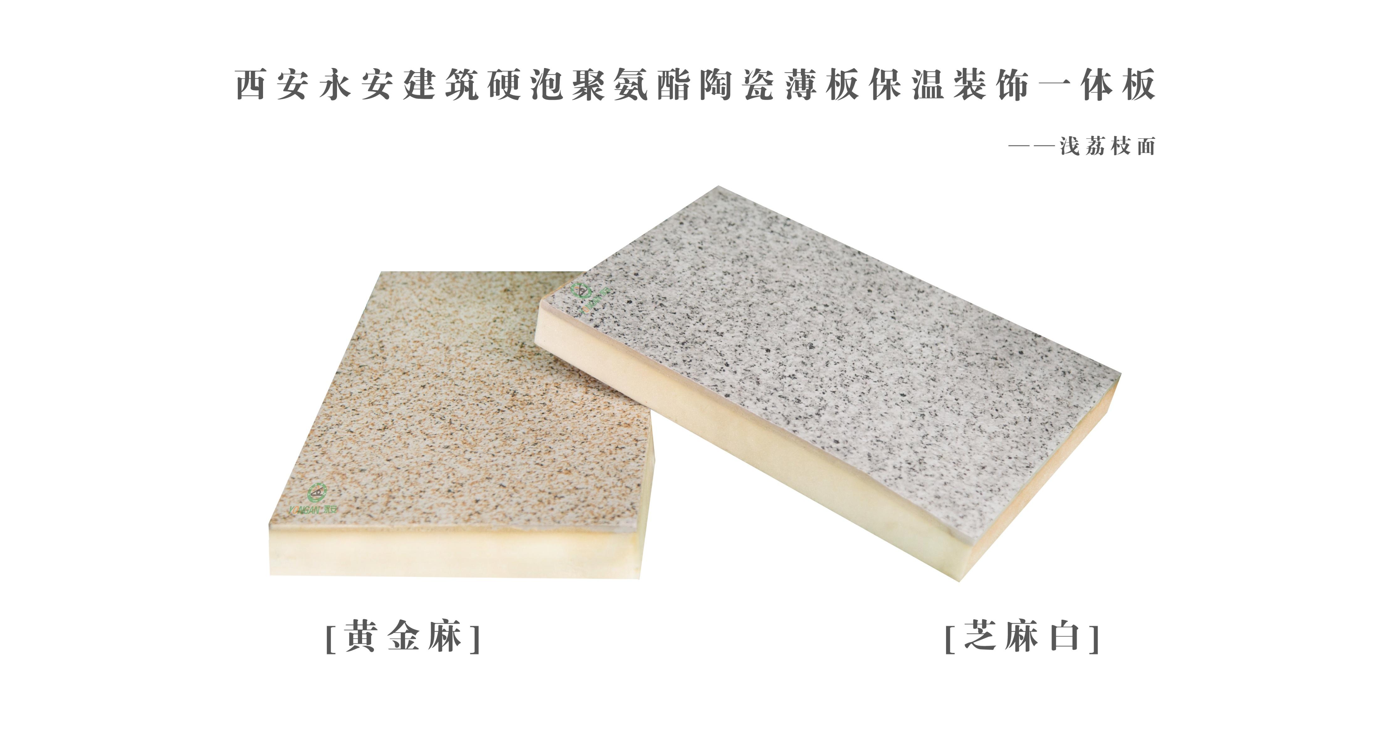 西安永安建筑的外墙保温装饰一体板以1300度高温压制而成的陶瓷薄板为饰面层,保证永久不褪色,整体光泽度更好。表面无微孔,面层灰尘等污染物雨水即可冲洗干净,自洁效果极佳。