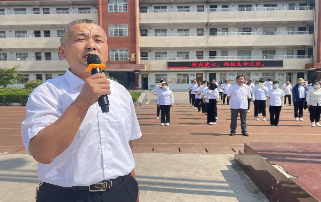 春晖行动负责人之一周勇校长在升旗仪式上发起捐款倡议