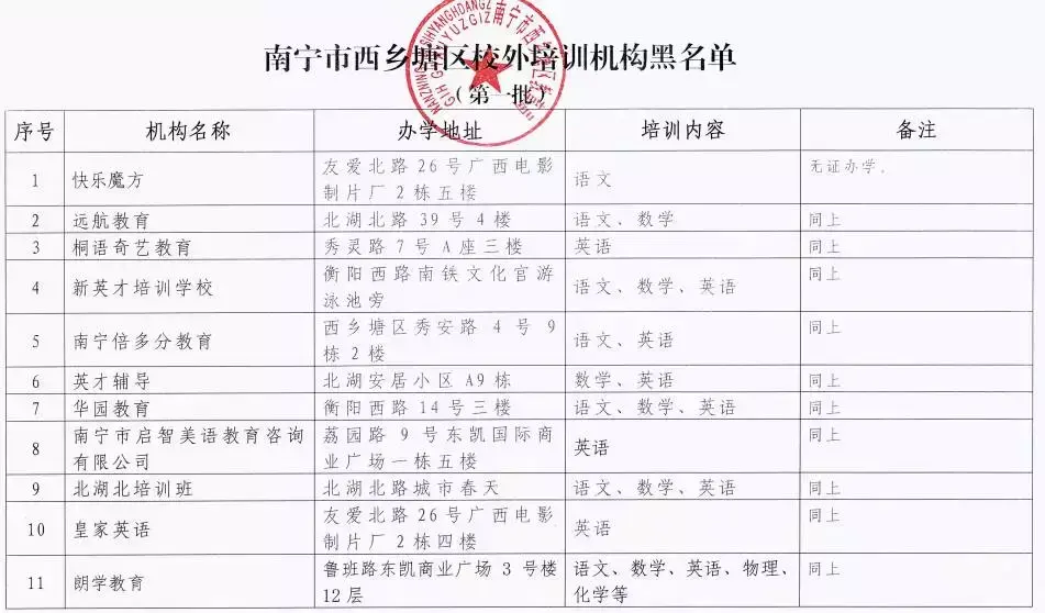 西乡塘区第一批校外培训机构黑白名单: