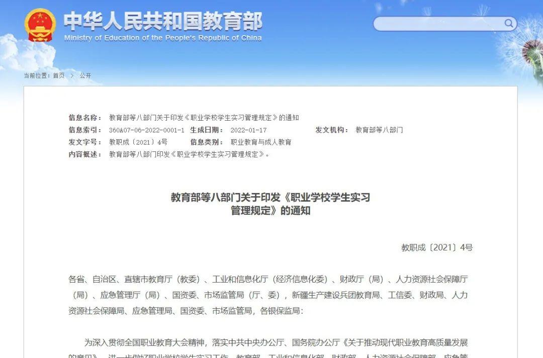 教育部等八部门关于印发《职业学校学生实习管理规定》的通知